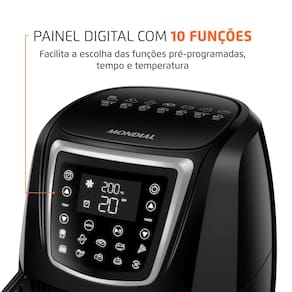 A Air Fryer Mondial AFN-40-DI é a opção perfeita para você preparar receitas do café da manhã ao jantar. Possui design sofisticado com painel digital e 10 funções já programadas. A Tecnologia de Circulação de Ar Quente cozinha, frita (a ar), assa e tosta os alimentos sem precisar adicionar óleo ou manteiga. A capacidade é de 4 litros e o cesto é quadrado, permitindo acomodar melhor os alimentos e assar por igual. Saiba mais sobre a AFN-40-DI: