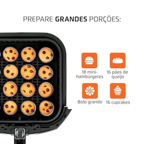 Fritadeira sem óleo air fryer 6l afn-60-bi preto 220v A família de air fryers mondial está sempre crescendo e a afn-60-bi, com capacidade de 6 litros, é a opção perfeita para receitas robustas, saborosas e que ficam prontas em poucos minutos a alta potência aliada à tecnologia de circulação de ar quente proporcionam mais agilidade e eficiência nos preparos. Além disso, por não precisar de óleo ou , a fritadeira a ar permite uma rotina alimentar com mais sabor e saúde. O cesto é quadrado e removível para acomodar melhor os alimentos e assar por igual. Saiba mais sobre a afn-60-bi: Praticidade + rapidez na cozinha: A tecnologia de circulação de ar quente e a alta potência possibilitam rapidez no preparo das receitas e praticidade em sua rotina na cozinha. Capacidade de 6 litros + cesto quadrado: O formato do cesto acomoda melhor os alimentos, permitindo assar por igual. Além disso, proporciona maior aproveitamento do espaço do cesto. Alimentação + saudável: Por não precisar de óleo ou no preparo das receitas, a air fryer permite uma rotina alimentar com mais sabor e saúde. Antiaderente: não gruda: O cesto possui o antiaderente duraflon, tecnologia exclusiva mondial, e os alimentos não grudam no fundo. Fácil de limpar: A limpeza da parte interna é fácil, pois a cuba e o cesto são removíveis e antiaderentes. Timer de 60 minutos: Facilidade e comodidade de selecionar o tempo necessário de preparo das receitas. A função timer proporciona a liberdade para você se dedicar a outras tarefas enquanto a air fryer trabalha para você. Aviso sonoro + desligamento automático: Após o tempo pré-definido no timer, há um aviso sonoro e a fritadeira desliga automaticamente. Controle de temperatura até 200c: Permite a escolha da temperatura ideal para diferentes tipos de alimentos. Muito além de batata frita: A air fryer é versátil e permite que você prepare pratos que vão muito além da clássica batata frita. É possível preparar legumes, carnes, peixes, lasanha, pizzas, além de pratos doces, como pudim, bolo de chocolate e cookies. Use sua criatividade e mãos à obra Um ano de mondial: A mondial é a escolha de milhões de consumidores. Mondial, a escolha inteligente Informações técnicas Modelo: afn-60-bi Voltagem tensão : 220v Cor: preto/inox Itens inclusos: 01 fritadeira; 01 livro de receitas e 01 manual de instruçõescapacidade: 6l Potência: 1900w Temperatura: até 200ºc Timer: 60 minutos Ação do produto: assar, cozinhar, gratinar e fritar seus alimentos Tipo de alimentos que comporta: prepara petiscos, massas, carnes, pastéis, pão de queijo, churros, peixes entre outros Revestimento antiaderente: sim Segurança: aviso sonoro e desligamento automático Tipo de fritadeira: fritadeira elétrica Luz indicadora: sim Dimensões do produto: 32,80cm x 34,20cm x 42,60cm Peso do produto: 6,70 Tipo de tomada amperes : 20a : 1 ano Dimensões do pacote: 49.1 x 47.2 x 42.1 axlxc Ean: 7899882316544