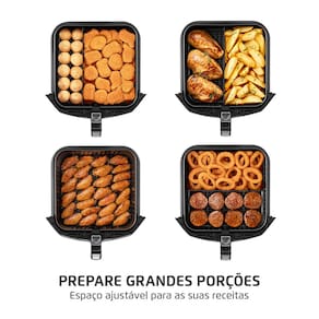 A Air Fryer Mondial Family 8L oferece mais agilidade para o dia a dia. O cesto com divisória removível possibilita o preparo de duas receitas ao mesmo tempo, sem misturar os sabores. E para fazer grandes porções, basta retirar a divisória. Diversidade para preparar o que quiser, como quiser!