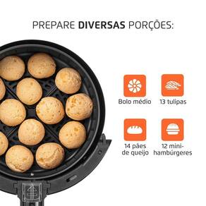 MUITO ALÉM DE BATATA FRITA: A Air Fryer é versátil e permite que você prepare pratos que vão muito além da clássica batata frita. É possível preparar legumes, carnes, peixes, lasanha, pizzas, além de pratos doces, como pudim, bolo de chocolate e cookies. Use sua criatividade para fazer receitas deliciosas!