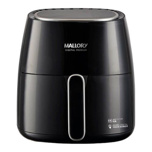 Fritadeira sem Óleo Digital Mallory Premium com capacidade de 5,5 litros, timer de até 60 minutos, painel de LED, alça fria, pés antiderrapantes e cesto removível. Ideal para preparar diversos tipos de alimentos de forma saudável.Porta-fio