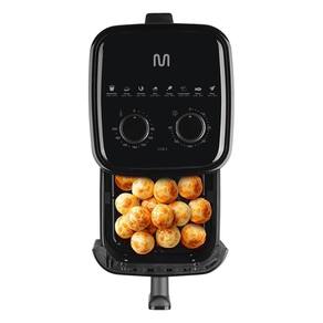 Fritadeira sem óleo com 3 litros de capacidade e 1200W de potência. Possui seletor de temperatura ajustável de 80°C a 200°C, controle de temperatura manual, superfície antiaderente e função de assar, fritar, tostar e gratinar. Eficiência energética classe A.Porta-fio