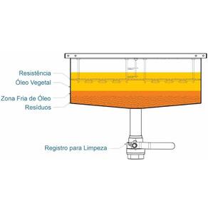 - Fabricado externamente em aço inox escovado 430 e tanque em aço inox 304; - Base em aço carbono reforçado com pintura epóxi e rodízios com freio que impossibilita a movimentação do fritador com óleo dentro; - Painel basculante com resistências blindadas em aço inox facilita a limpeza do tanque; - O controle digital da temperatura garante uma precisão uma padronização mais eficiente do processo; - Registro esférico com ampla passagem para facilitar o escoamento de resíduos; - Equipamento Certificado pela OCP 0070 conforme Portaria 148/2022.