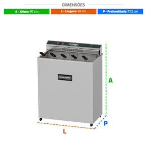 - Base em aço carbono reforçado com pintura epóxi e rodízios com freio que impossibilita a movimentação do fritador com óleo dentro;