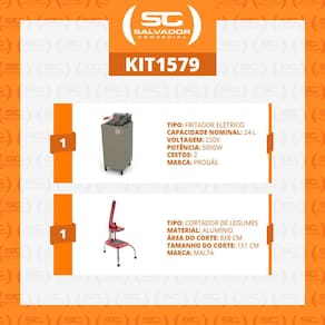 Fritador Industrial Elétrico Pr-300e Água e Óleo 24L Progás 220V e Cortador de Legumes