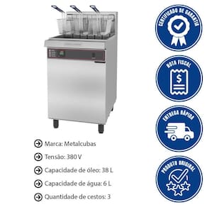 FRITADOR INDUSTRIAL ELÉTRICO METALCUBAS FAO 3C PRM ÁGUA E ÓLEO 380V TRIFÁSICO 44L MTC0051(24431)