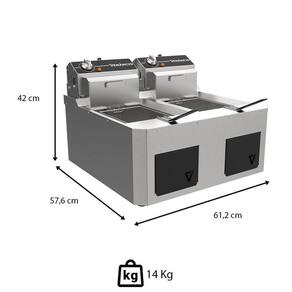 O peso aproximado do fritador é de 14 kg. Eficiência: 0 | Voltagem: 127V | Linha: VFO30E-ME Elétrico 16 Litros 127V Inox | Uso recomendado: Industrial | Sistema de cozedura: Óleo | Tipos de alimentação: Elétrica | Capacidade em volume: 16 L | Tipo de gás: Não aplica | Peso: 14 Kg | Altura: 42 cm | Largura: 61,2 cm | Profundidade: 57,6 cm | Tipos de controle: Manípulos | Materiais: Aço inoxidável | Capacidade em peso de cesto: 1 kg | Quantidade de cestas: 2 | Com termostato: Sim | Com cesto removível: Sim | Com filtro de ar: Não | Com desligamento automático: Não | Com temporizador: Não | Cor: Inox | Modelo alfanumérico: VFO30E-ME(36415) | Baterias: Não | Certificação de teste externa: Não | Contém conteúdo líquido: Não | Instruções de cuidado: Lavar à mão | Material: Inox | Número de caixas: 1 | Características principais: Fritador Industrial Elétrico Venâncio de 16 litros. | Características principais 2: Feito em inox durável. | Características principais 3: Surpreenda seus clientes com rapidez e sabor. | Número de itens: 1 | Exige montagem: Não | Dimensões do produto (Compr. X Larg. X Alt.): 57,6 x 61,2 x 42 cm | EmbalagemComprimento-cm: 58 | EmbalagemLargura-cm: 57 | Dias Entrega Fornecedor: 0 | Cubagem: 0.138852 | Modelo: VFO30E-ME Elétrico 16 Litros 127V Inox | Marca: Venâncio | EmbalagemAltura-cm: 42 | Peso Líquido: 0.0000