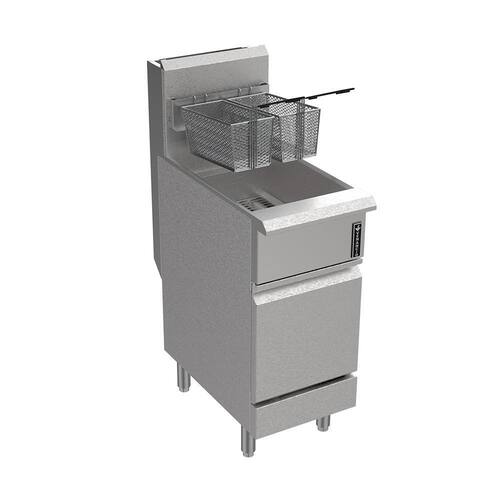 Possui sistema de segurança com interrupção de abastecimento de gás ao atingir a temperatura de 232 graus e a válvula de drenagem na entrada da porta permite o esvaziamento da cuba rapidamente e com segurança, enquanto a zona fria ao fundo do tanque evita influência de resíduos alimentícios.