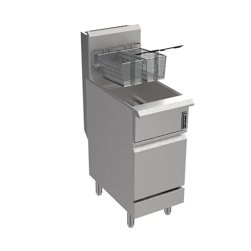 Possui sistema de segurança com interrupção de abastecimento de gás ao atingir a temperatura de 232 graus e a válvula de drenagem na entrada da porta permite o esvaziamento da cuba rapidamente e com segurança, enquanto a zona fria ao fundo do tanque evita influência de resíduos alimentícios.