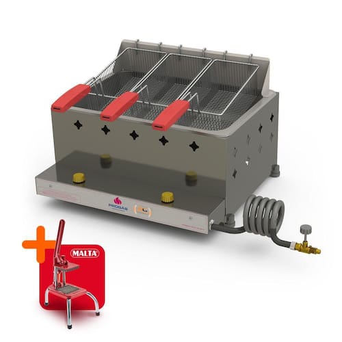 Fritador Óleo 1 Cuba 3 Cestos a Gás Alta Pressão 10L PR-30G Progás e Cortador de Legumes