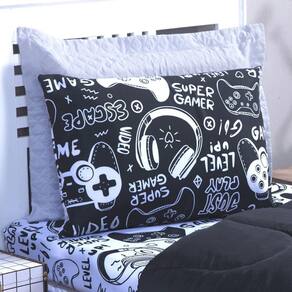 Fronha Avulsa Micropercal 200 fios Dupla Face Preto e Branco Game 65 cm x 45 cm A belíssima fronha GAME é ideal para a cama de seu filho a . Ela deixa seu quarto o confortável e personalizado e ainda é dupla face um lado estampada em branco e o outro em preto tendo dois produtos em um