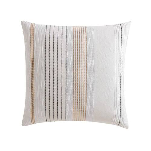 Benjara Jela Euro Sham com listras de jacquard recortadas, algodão, 26 x 26, branco, cinza