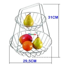 Fruteira 2 Andares Metal Cromado - Fruteira de Mesa Dupla - Estilosa Cromada Design Dois Andares - Aramado - PANAMI