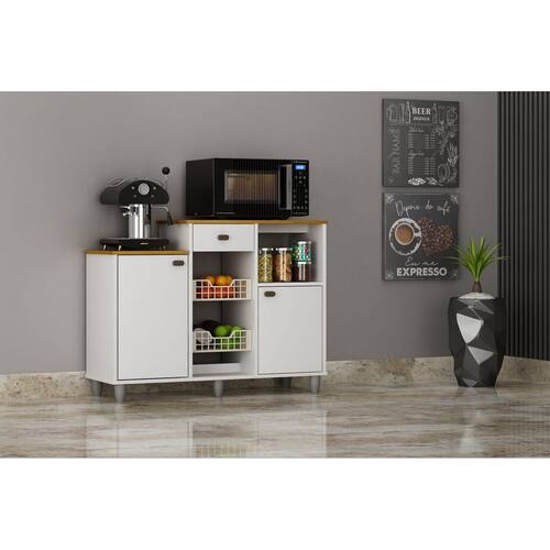 Transforme sua cozinha em um ambiente mais organizado, elegante e funcional com a Fruteira Flora! Projetada para quem valoriza praticidade e beleza no mesmo móvel, a Fruteira Flora é ideal para guardar frutas, legumes, utensílios domésticos e manter tudo sempre ao alcance das mãos. Com estrutura reforçada em MDP 12mm e acabamento em pintura UV semibrilho/acetinado, esta fruteira combina resistência, durabilidade e um visual moderno que harmoniza facilmente com diferentes estilos de decoração. Seu design inteligente oferece amplo espaço interno: 2 portas (sendo uma grande com prateleira para separação de utensílios), 1 gaveta espaçosa e 2 cestos vazados, ideais para armazenar frutas e vegetais com ótima ventilação, mantendo-os frescos por muito mais tempo. Os puxadores em plástico garantem praticidade no uso diário, enquanto a capacidade de até 50 kg torna esse móvel perfeito para armazenar diversos itens de forma segura. O tamanho generoso faz desta fruteira a escolha certa para cozinhas de todos os tamanhos, oferecendo muito mais organização e versatilidade ao seu espaço. Destaques e Benefícios: - Estrutura em MDP 12mm: resistência e durabilidade para uso diário - 2 portas com amplo espaço interno e prateleira para melhor separação dos itens - 1 gaveta funcional para pequenos objetos ou talheres - 2 cestos vazados para ótima circulação de ar e frutas sempre frescas - Acabamento em pintura UV (semi-brilho/acetinado): moderno, fácil de limpar e manter - Capacidade de peso: até 50 kg - Puxadores práticos em plástico - Design elegante, perfeita para qualquer estilo de cozinha - Ideal para organização de frutas, legumes, mantimentos e utensílios Dimensões da Fruteira Flora: - Altura: 78,5 cm - Largura: 98,8 cm - Profundidade: 36 cm - Peso: 20,4 kg Informações Importantes: - Limpeza fácil: utilize pano úmido com detergente neutro e finalize com pano seco - Montagem de complexidade alta (manual incluso) - As cores podem sofrer variação dependendo do monitor e iluminação (imagens ilustrativas) - Produto embalado com total segurança para o transporte Deixe sua cozinha mais completa, organizada e cheia de charme! Garanta já a Fruteira Flora e aproveite mais praticidade e beleza no seu dia a dia!