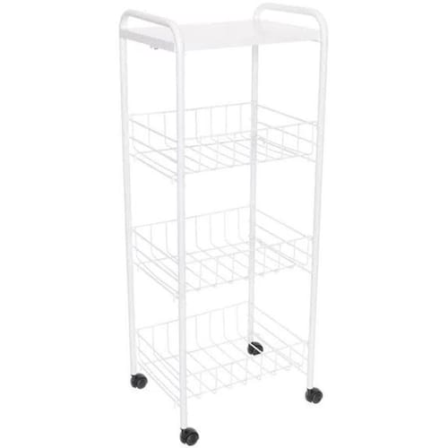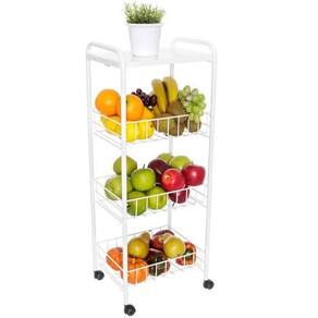 A fruteira aramada com cestos e tampo de madeira vai fazer a diferença na sua cozinha Organize suas frutas e legumes com praticidade, além de conseguir otimizar os espaços da sua cozinha. Sua casa pede uma fruteira versátil, com design moderno para compor a decoração da cozinha. Com três cestos compartimentos em aramado, a fruteira é ideal para os lares que adoram consumir esse tipo de alimento, além de possuir rodinhas que facilitam o transporte das frutas pelos ambientes. O tampo de madeira pode ser utilizado como suporte para a decoração.