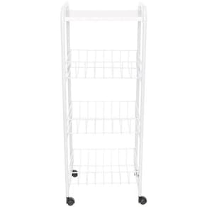Fruteira 3 cestos com tampo de madeira e rodinhas 1308 metaltru