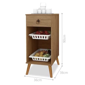 Fruteira Ásia Amêndoa O Fruteira Ásia é ideal para guardar suas frutas prediletas e ainda organizar melhor sua cozinha. Elaborada em MDP de 15 mm, possui 2 cestos para frutas, 01 gaveta com corrediça metálica e puxador de plástico e pés de plástico. Informações do produto: Altura: 90 cm Largura: 36 cm Comprimento: 36 cm Itens inclusos: 1 Fruteira. Kit completo para montagem, manual detalhado de instruções para montagem. Garantia: 3 meses contra defeito de fabricação. Informações complementares: - Verificar o tamanho e detalhes do produto antes da compra. - Fotos meramente ilustrativa. - A transportadora entregará o produto no andar térreo do endereço de entrega. - Avaliar a mercadoria no ato do recebimento e recusar em caso de divergência ou avarias. - Não nos responsabilizamos pela montagem e desmontagem do produto no ato da entrega e devolução, assim como os custos gerados nestas situações. - Sugerimos a contratação de um montador profissional para a montagem do produto. Não nos responsabilizamos por avarias causadas no ato da montagem.
