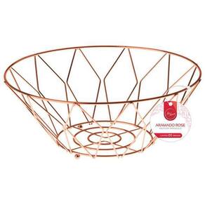 Fruteira cesta de mesa aramado redonda metalizado rose gold - 01 fruteira de mesa aramada metalizada rose gold para frutas