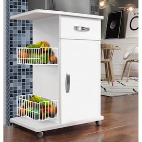 Fruteira compacta com cestos laterais (modelo capri)- 81 cm de altura;- 40 cm de profundidade;- 58 cm de largura;- chapas mdp 15mm de espessura;- 1 gaveta reforçada;- 1 porta- 1 prateleira da largura da peça (removível)- com corrediça telescópica;- puxadores cromados;- alto brilho;- dois cestos laterais- suporta 90kgDimensões do cesto- 30cm x 17,5cm x 14cmSucesso de vendas há 25 anos, com milhares de unidades vendidasNossa fruteira tem alta qualidade de acabamento, sua pintura, é com acabamento em verniz brilhante todas as chapas são de 15mm de espessura, gerando maior resistência e qualidade ao produto.Com uma prateleira (removível) da largura da peça. É adaptável as suas necessidades, seja para armazenamento de objetos maiores ou organização de pequenos utensílios. Você decideOs cestinhos são charmosos e práticos. Possuem uma ótima dimensão, permitindo assim, guardar muitas frutas.A gaveta da fruteira possui corrediça telescópica, tornado seu manuseio muito mais fácil Lembrando que móvel vem desmontado, porém, na sua embalagem há um manual de montagem bem simples, o mesmo pode ser oferecido digitalmente, caso seja sua preferência. Uma ótima opção para melhor organizar sua casa como o móvel é super resistente, aguenta 90kgs, servindo como suporte de, como exemplo forno micro-ondas, galão de agua e entre outros