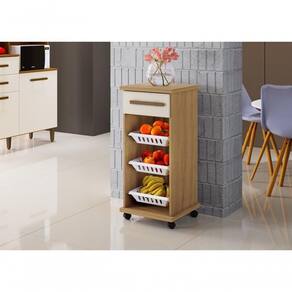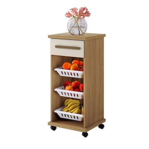 Fruteira Curitiba Branca Arte Móveis 1 Gaveta 3 Cestos Cinamomo/off White