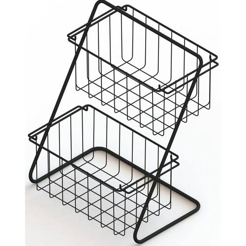 A fruteira dupla preta de bancada com 2 cestos em aço é o móvel perfeito para quem busca praticidade e organização na cozinha. Com um design moderno e elegante, ela se destaca pela sua funcionalidade e resistência.
