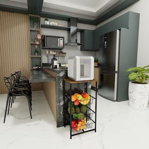 Fruteira de chão cozinha aço mdf 3 cestos multiuso rodinha