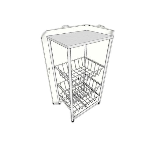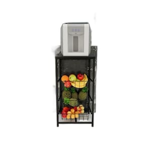 Fruteira de chão cozinha aço mdf 3 cestos multiuso Cor: preto Produto vai desmontado, necessita realizar a montagem O produto já é enviado com o kit para instalação. Fruteira multiuso com cestos deslizantes produzida em aço, podendo ser utilizada em vários ambientes na cozinha, banheiro, quarto, facilitando seu dia-a-dia. Seu tampo superfície superior em mdf permite sua utilização para diversas outras possibilidades, como a utilização de arranjos ou até mesmo utensílios domésticos, como bebedouro, suportando até 30 kg, o que lhe propicia um excelente custo-benefício. Dimensões: Altura - 77cm Largura - 40cm Profundidade - 30cm Benefícios: Cestos deslizante, de fácil encaixe. Produto resistente. Pintura eletrostática epóxi, maior durabilidade não enferruja Conteúdo da embalagem: 1- fruteira preta com mdf de 3 cesto de fábrica. 3 meses contra defeito de fabricação. Marca: Não Informado