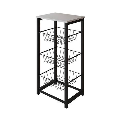 Fruteira De Chão Cozinha Desmontada Aço Preto Tampo Branco MadriOrganize suas frutas preferidas na fruteira Madri. Ela é ideal para fazer parte da sua cozinha, contando com um design atraente que é capaz de transformar seu lar. A Fruteira que se encaixará perfeitamente na sua cozinha. Fruteira Nevada, além de ser uma peça compacta e moderna que organiza sua cozinha, é perfeita para você que busca organização sem perder seu estilo e sua essência.Informação do ProdutoTipo: FruteiraModelo: MadriCor Base: PretoTampo: BrancoCor cesto: PretoQuantidade de Cestos: 3CaracterísticasAltura: 83,5cmLargura: 40,5cmProfundidade: 29,5cmATENÇAOImagem meramente ilustrativa, foram realizadas manipulação para demonstração do produto, podendo haver diferença de tonalidades dependendo do seu monitor ou luminosidade.Fruteira de ChÃo Cozinha Desmontada AÃo Preto Tampo Branco Madri