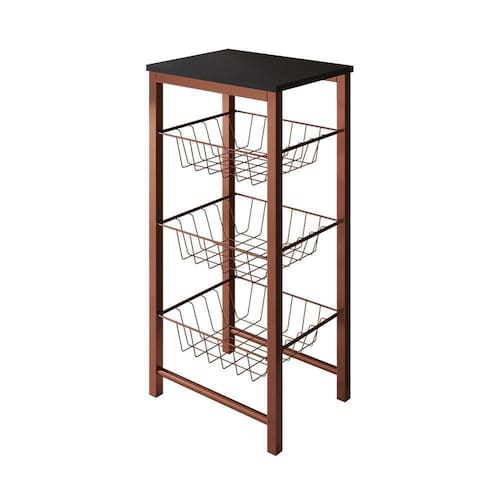 Fruteira De Chão Cozinha Montada Aço Cobre Tampo Preto RomaOrganize suas frutas preferidas na fruteira Roma. Ela é ideal para fazer parte da sua cozinha, contando com um design atraente que é capaz de transformar seu lar. A Fruteira que se encaixará perfeitamente na sua cozinha. Fruteira Nevada, além de ser uma peça compacta e moderna que organiza sua cozinha, é perfeita para você que busca organização sem perder seu estilo e sua essência.Informação do ProdutoTipo: FruteiraModelo: RomaCor Base: CobreTampo: PretoCor cesto: CobreQuantidade de Cestos: 3CaracterísticasAltura: 83,5cmLargura: 40,5cmProfundidade: 29,5cmATENÇAOImagem meramente ilustrativa, foram realizadas manipulação para demonstração do produto, podendo haver diferença de tonalidades dependendo do seu monitor ou luminosidade.Fruteira de ChÃo Cozinha Montada AÃo Cobre Tampo Preto Roma