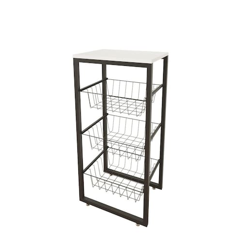 Fruteira de chão em aço cozinha suporte bebedouro mdf branco Produto vai desmontado, necessita realizar a montagem O produto já é enviado com o kit para instalação. Fruteira multiuso com cestos deslizantes produzida em aço, podendo ser utilizada em vários ambientes na cozinha, banheiro, quarto, facilitando seu dia-a-dia. seu tampo superfície superior em mdf permite sua utilização para diversas outras possibilidades, como a utilização de arranjos ou até mesmo utensílios domésticos, como bebedouro, suportando até 30 kg, o que lhe propicia um excelente custo-benefício. Dimensões: Altura - 77cm Largura - 40cm Profundidade - 30cm Benefícios: Cestos deslizante, de fácil encaixe. Produto resistente. Com sistema de regulagem de altura. Pintura eletrostática epóxi, maior durabilidade não enferruja Conteúdo da embalagem: 1- fruteira preta com mdf branco de 3 cesto de fábrica. 3 meses contra defeito de fabricação. Marca: Não Informado