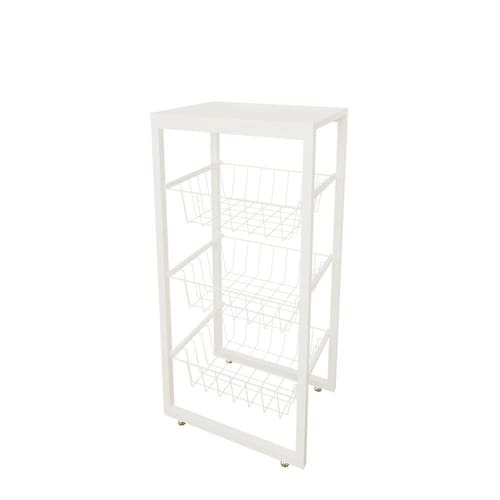 Fruteira De Chão Para Cozinha Branco Brilho Em Aço Branco Fruteira multiuso com cestos deslizantes produzida em aço, podendo ser utilizada em vários ambientes na cozinha, banheiro, quarto, facilitando seu dia-a-dia. Seu tampo superfície superior em MDF permite sua utilização para diversas outras possibilidades, como a utilização de arranjos ou até mesmo utensílios domésticos, como BEBEDOURO, suportando até 30 kg, o que lhe propicia um excelente custo-benefício. Dimensões:Altura - 80cmLargura - 39,5cmProfundidade - 23cm Beneficios:Cestos Deslizante, de fácil encaixe.Produto resistente. Com sistema de regulagem de altura.Pintura eletróstatica Epóxi, maior durabilidade não enferruja Conteúdo da Embalagem:1- Fruteira 3 cesto Garantia de fábrica. 3 meses contra defeito de fabricacão. Marca: Belolar