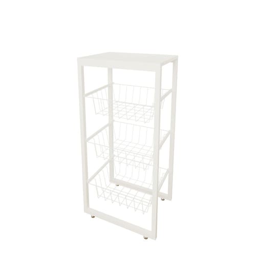 Fruteira De Chão Para Cozinha Branco Brilho Em Aço Branco Fruteira multiuso com cestos deslizantes produzida em aço, podendo ser utilizada em vários ambientes na cozinha, banheiro, quarto, facilitando seu dia-a-dia. Seu tampo superfície superior em MDF permite sua utilização para diversas outras possibilidades, como a utilização de arranjos ou até mesmo utensílios domésticos, como BEBEDOURO, suportando até 30 kg, o que lhe propicia um excelente custo-benefício. Dimensões: Altura - 80cm Largura - 39,5cm Profundidade - 23cm Beneficios: Cestos Deslizante, de fácil encaixe. Produto resistente. Com sistema de regulagem de altura. Pintura eletróstatica Epóxi, maior durabilidade não enferruja Conteúdo da Embalagem: 1- Fruteira 3 cesto de fábrica. 3 meses contra defeito de fabricacão. Marca: Não Informado