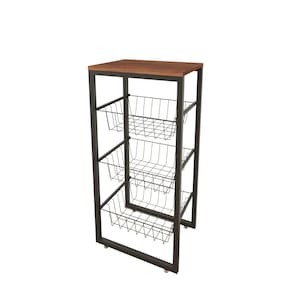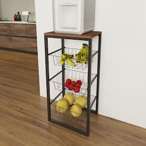 Fruteira De Chão Preto Fosco Em Aço Amadeirado Fruteira multiuso com cestos deslizantes produzida em aço, podendo ser utilizada em vários ambientes na cozinha, banheiro, quarto, facilitando seu dia-a-dia.