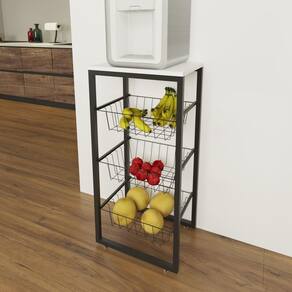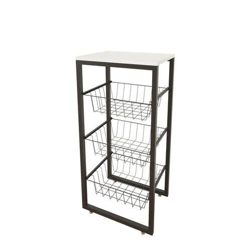 Fruteira De Chão Preto Fosco Em Aço Branco Fruteira multiuso com cestos deslizantes produzida em aço, podendo ser utilizada em vários ambientes na cozinha, banheiro, quarto, facilitando seu dia-a-dia.
