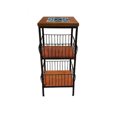 Fruteira de chão com dois andares, construída por artesãos premiados, usando madeira de demolição tratada e ferro com pintura eletrostática antiferrugem.
