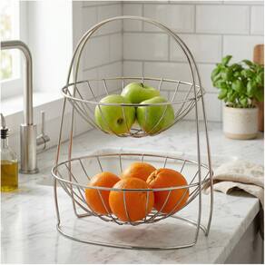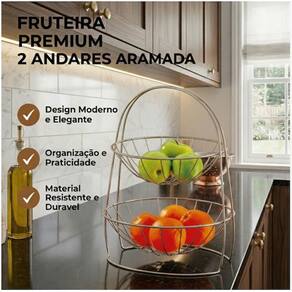 A Fruteira Aramada vai fazer a diferença na sua cozinha! Organize suas frutas e legumes com praticidade, além de conseguir otimizar os espaços da sua cozinha. Sua casa pede uma fruteira versátil, com design moderno para compor a decoração da cozinha. Com 2 cestos em aramado, a fruteira é ideal para os lares que adoram consumir esse tipo de alimento, além de possuir um acabamento fosco, também conta com o acabamento Rust Free, muito mais resistente.