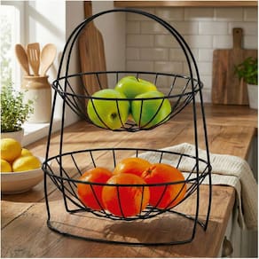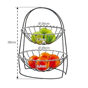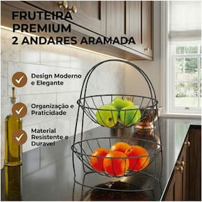 A Fruteira Aramada vai fazer a diferença na sua cozinha! Organize suas frutas e legumes com praticidade, além de conseguir otimizar os espaços da sua cozinha. Sua casa pede uma fruteira versátil, com design moderno para compor a decoração da cozinha. Com 2 cestos em aramado, a fruteira é ideal para os lares que adoram consumir esse tipo de alimento, além de possuir um acabamento brilhoso, também conta com o acabamento Rust Free, muito mais resistente.