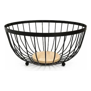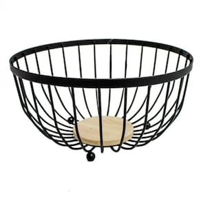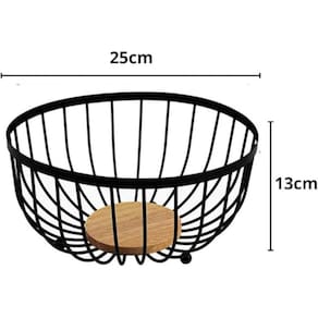 A Fruteira de Mesa Aramada Preta com Base Madeira é a escolha perfeita para quem busca funcionalidade e estilo na sua cozinha.