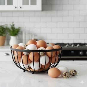 Com um design redondo e elegante, ela se destaca pela sua estrutura em metal aramado, que proporciona uma ótima ventilação para as frutas, mantendo-as frescas por mais tempo.