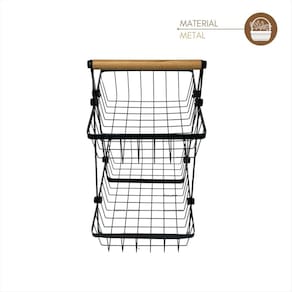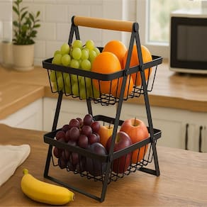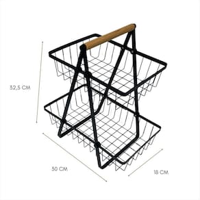 Fruteira de Metal: Organização com Estilo e PraticidadeDê um toque especial à sua cozinha com esta fruteira de metal de dois andares Com um design elegante e funcional, ela é perfeita para armazenar frutas, legumes e outros itens de forma prática e organizada.Benefícios que fazem a diferença:Material resistente - Estrutura de metal durável e estável.Dois andares espaçosos - Mais capacidade para otimizar seu espaço.Alça de madeira - Toque rústico e sofisticado para qualquer ambiente.Base com pés esféricos - Estabilidade e charme extra.Ideal para quem busca organização sem abrir mão do design moderno. Adicione mais praticidade e beleza à sua cozinha hoje mesmoEspecificações Técnicas:Cor: PretoMaterial: Metal e MadeiraMedidas Aproximadas: Altura: 32,5 cm x Largura: 18 cm x Comprimento: 30 cmImagens IlustrativasComposição da Embalagem:1 Cesta de Frutas Marca: Não Informado