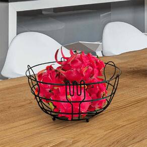 Espaço Adequado: Ótimo tamanho para acomodar frutas de maneira organizada, permitindo uma boa ventilação para mantê-las frescas por mais tempo. Design Moderno: O acabamento preto aramado e o detalhe em formato de garfo trazem um toque contemporâneo, ideal para diversas decorações. Durabilidade: Fabricada em aço resistente, a fruteira é durável e fácil de limpar, oferecendo praticidade no uso diário.
