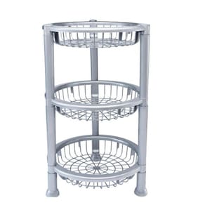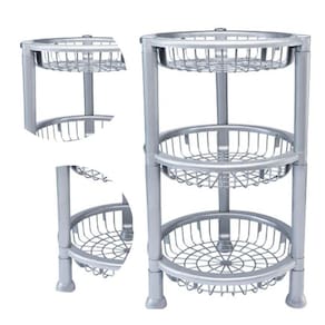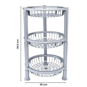 Fruteira De Plástico Com 3 Andares Redonda Empilhável Cinza