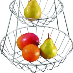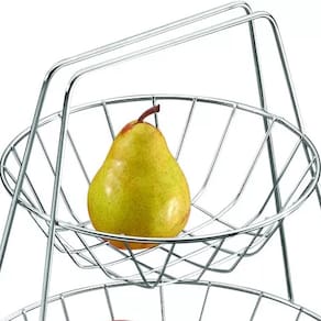 Pequenos cuidados com seu lar fazem toda a diferença. #Alça Que Facilita O Transporte #Fabricado Aço Cromado #Fruteira 2 Andares Garantia: 1 Ano / Peso: 490g / Cor: Cromado / Ref: 71003 Dimensões: 30,5cm cesto maior (D) x 21cm cesto menor (D) x 34cm (A). Cuidados: Não utilizar materiais abrasivos. Riscos e batidas podem ocasionar oxidação. Seguindo essas recomendações, você o manterá sempre com o aspecto de novo. Capacidade: 3 Kg. Material: - Aço Cromado: Possui uma camada extra de protetivo aplicado sobre o cromo que proporciona grande resistência à corrosão e durabilidade, até mesmo em ambientes úmidos. Esta fruteira dupla é perfeita para acomodar até 3Kg de frutas e legumes. Fabricada em aço cromado possui design moderno e é perfeita para deixar sobre a mesa ou bancada, deixando as frutas sempre à mão. Possui 2 andares o que facilita a separação entre as frutas e legumes, e facilitando a organização.