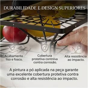 Fruteira Dupla Quadrada Organizador de Mesa Preto Fosco