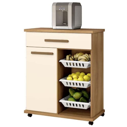 Funcional e prático, a fruteira é ideal para manter sua cozinha organizada e suas frutas sempre bem armazenadas e permitem acomodar utensílios, mantimentos ou eletroportáteis, otimizando o espaço. Com design moderno, acabamento de qualidade e fácil limpeza, esse armário une beleza e resistência, deixando sua cozinha mais charmosa e prática.