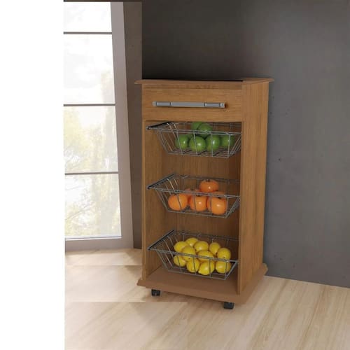 Fruteira Multiuso Grécia Freijó Com 3 Cestos 1 Gaveta E Pés Com Rodinhas
