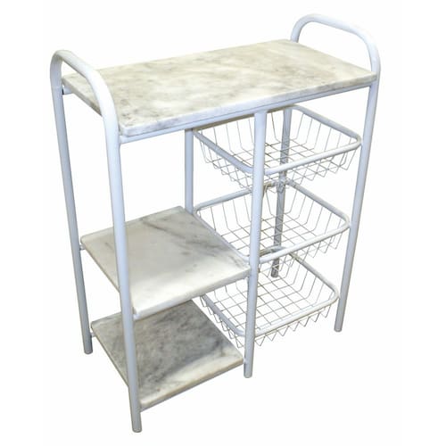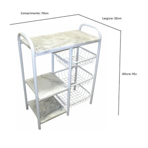É uma ótima opção para quem busca organizar e otimizar os espaços da sua cozinha. Ela possui cestos aramados que são mais resistentes e irão manter as frutas e legumes sempre organizados. Possui duas prateleiras e uma parte superior que pode ser utilizada para forno microondas ou outras utilidades. Além de todas essas vantagens, o móvel ainda possui acabamento impresso, alta cobertura e uma ótima aderência, tudo para aumentar sua durabilidade e deixá-lo ainda mais resistente. Pedra: Marmore