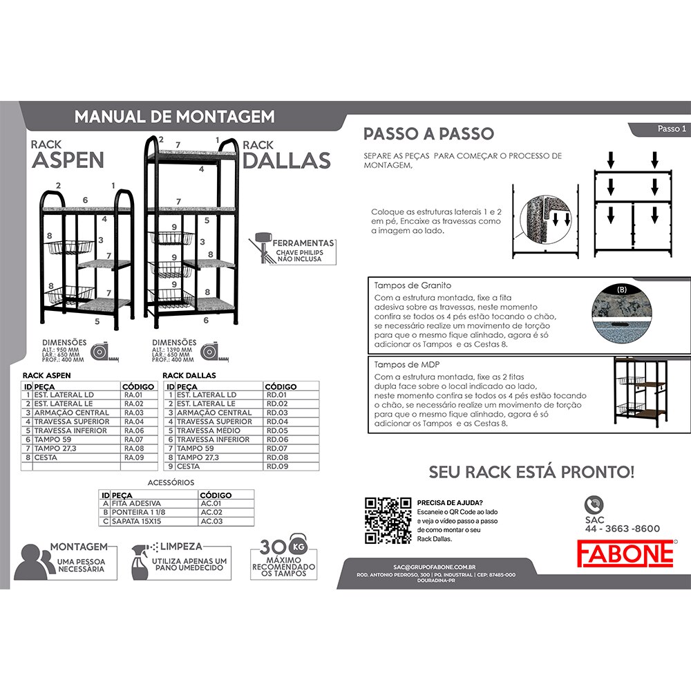 Com estrutura em aço carbono de alta durabilidade e acabamento em pintura epóxi eletrostática, a fruteira Aspen apresenta excelente proteção contra ferrugem e desgaste. Os três tampos em BP agregam sofisticação e resistência térmica ao produto, tornando-o uma peça decorativa e útil ao mesmo tempo.
