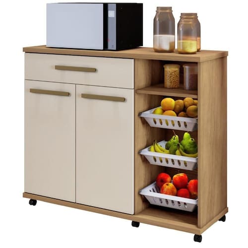 Funcional e prático, a fruteira é ideal para manter sua cozinha organizada e suas frutas sempre bem armazenadas e permitem acomodar utensílios, mantimentos ou eletroportáteis, otimizando o espaço. Com design moderno, acabamento de qualidade e fácil limpeza, esse armário une beleza e resistência, deixando sua cozinha mais charmosa e prática.