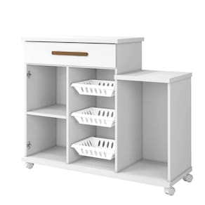 Garantia: 3 Meses Material da estrutura: MDP/MDF Acabamento: Pintura de Portas: 02 de Prateleiras: 01 de Gavetas: 01 de Cestos: 03 Possui vidro: Não Possui rodízio: Sim Necessita de montagem? Sim, sugerimos a contratação de algum experiente de sua preferência Recomendações de limpeza e manutenção: Limpar com pano umedecido, não aplicar produtos químicos.